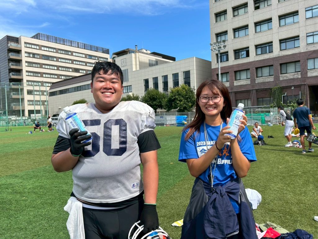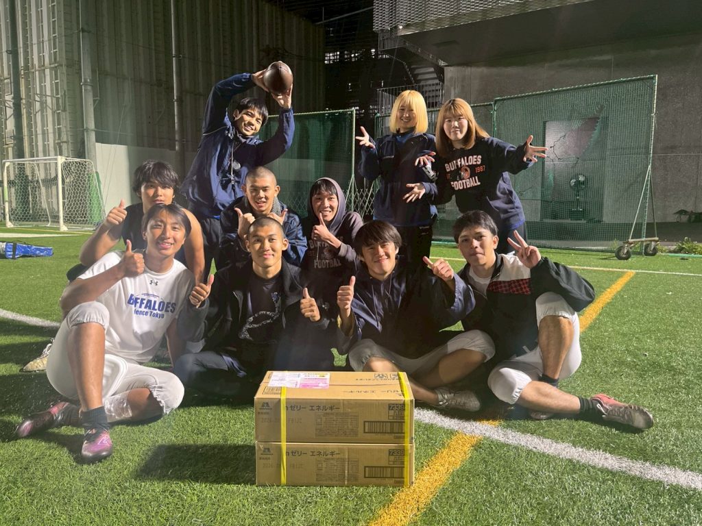 我々BUFFALOESでは、主に水土日練習の途中で、サプリの時間を取り入れています。少しでも、選手が練習中にカロリー不足になるのを防ぐためです。頂いたエネルギーゼリーは、これから始まる夏の練習の、選手のサプリの補填に使わせていただく予定です。