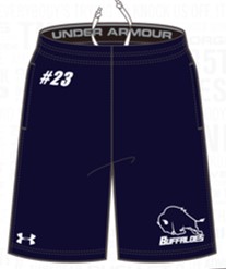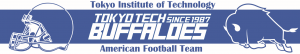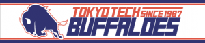 紺地にオレンジの文字でアメフトボールとBUFFSのロゴがプリントされています。